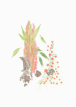 Seit Anfang des Jahres 2020 ist Gabriela Oberkofler intensiv mit der Recherche zum Projekt beschäftigt. Bereits entstanden ist eine Serie neuer Zeichnungen unter dem Titel Pflanzenpalaver. Diese entwerfen ein neues, vielfältiges und aufschlussreiches Bild von Pflanzen. Sie fokussieren unter anderem auf Besonderheiten im Wachstum der Erbse, auf Abwehrmechanismen der Akazie, auf Mutationen im Wachstum des Mais, auf Stress-Bewältigungsmechanismen der Tomate, auf die Bodenkultur des Mykorrhiza Pilzes, um nur einige Beispiele zu geben. Zudem wurde eine Vielzahl an Maispflanzen ausgegraben und zum Trocknen aufgehängt. Sie werden sich in der Ausstellung als ein hängender Garten präsentieren, den es zu durchstreifen gilt. Er ergänzt die Präsentation des das Saatgutarchivs und wird begleitet durch diverse Videoformate, darunter Interviews mit Expert*innen.