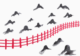 5 Zeichnungen aus der Serie Haus, Baum und Zaun, 2011 / 12, Aquarellierbarer Filzstift, Tusche auf Papier, 30 × 40 cm